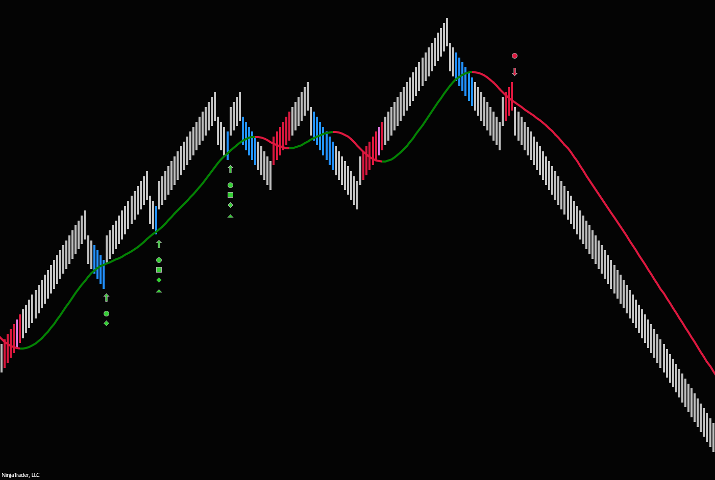 Works on any chart type and any timeframe. Weekly swing trades down to intraday seconds.