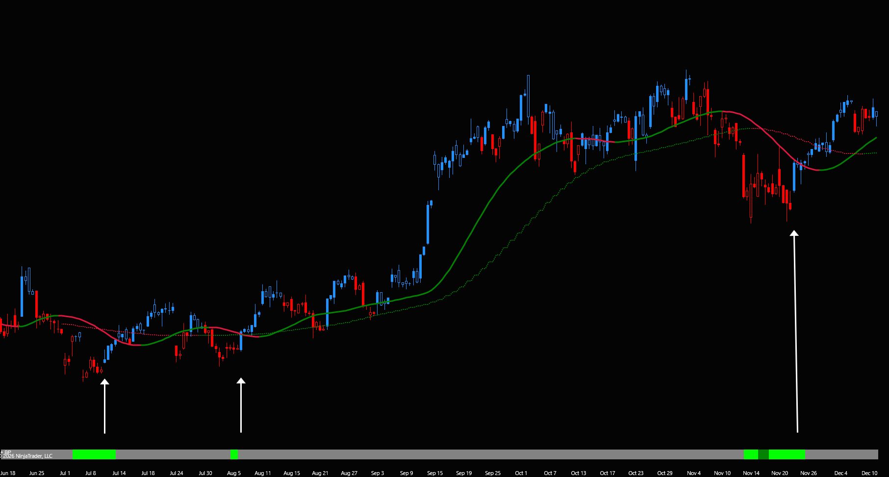 The foundation of everything at A+ Setups. The CenterLine Method has anchored a swing trading program for over 15 years. It pairs the proprietary CenterLine Trend Indicator with GHL ColorBars to define market conditions with visual clarity — bullish, bearish, or transitional. No interpretation required.